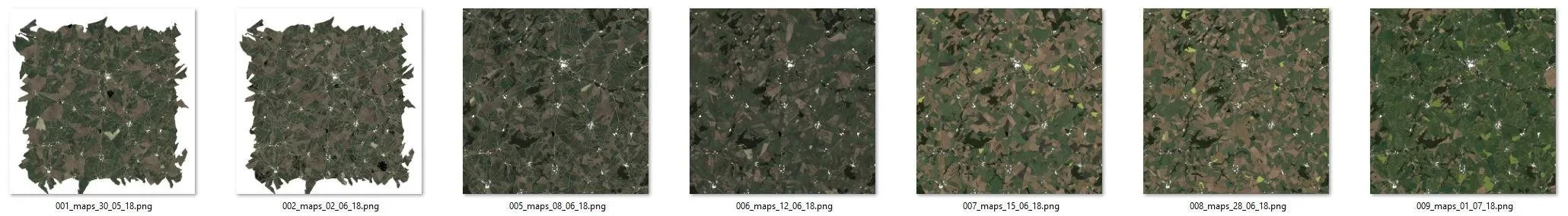 Instead, I used the automation toolkit for Substance, which among other things, uses python scripts to automate batch jobs for Substance. They have an example on how to run out variations of a substance file and write out all the export maps here. So after hacking my way through the example script, I was able to make a script that could chew through all the input mask maps I had rendered from Houdini, and generate a substance for each field, rendering out base colour, roughness and a normal map for each field. For each field the script would pick randomised values for the parameters I had defined, creating a huge amount of variety. It took roughly 3 or 4 hours to render out the approximately 1000 fields that would make up a tile, so I would just let it run overnight. The end result of this step was another folder of renders for each tile, but this time textured with substance.
